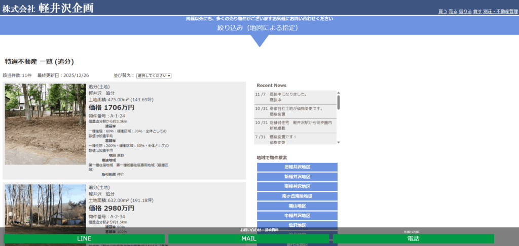 追分エリアを中心に土地・中古別荘・店舗物件まで幅広く網羅